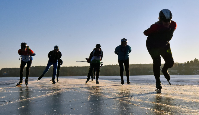 En dat kan al vroeg omdat Zweedse schaatsliefhebbers de omgeving en het ijs kennen. Met hun veiligheidsuitrusting trekken ze er op uit, verkennend over de omringende ijsvlaktes. Steeds verder en verder.