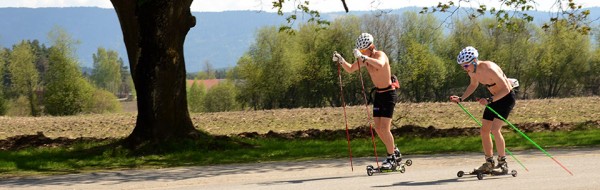 De winter in het noorden mag dan lang duren met veel sneeuw, in de zomer is het tijd om te werken aan de conditie voor het langlaufen. In mei maken rolskiërs gebruik van het mooie weer. Het is zo weer winter.